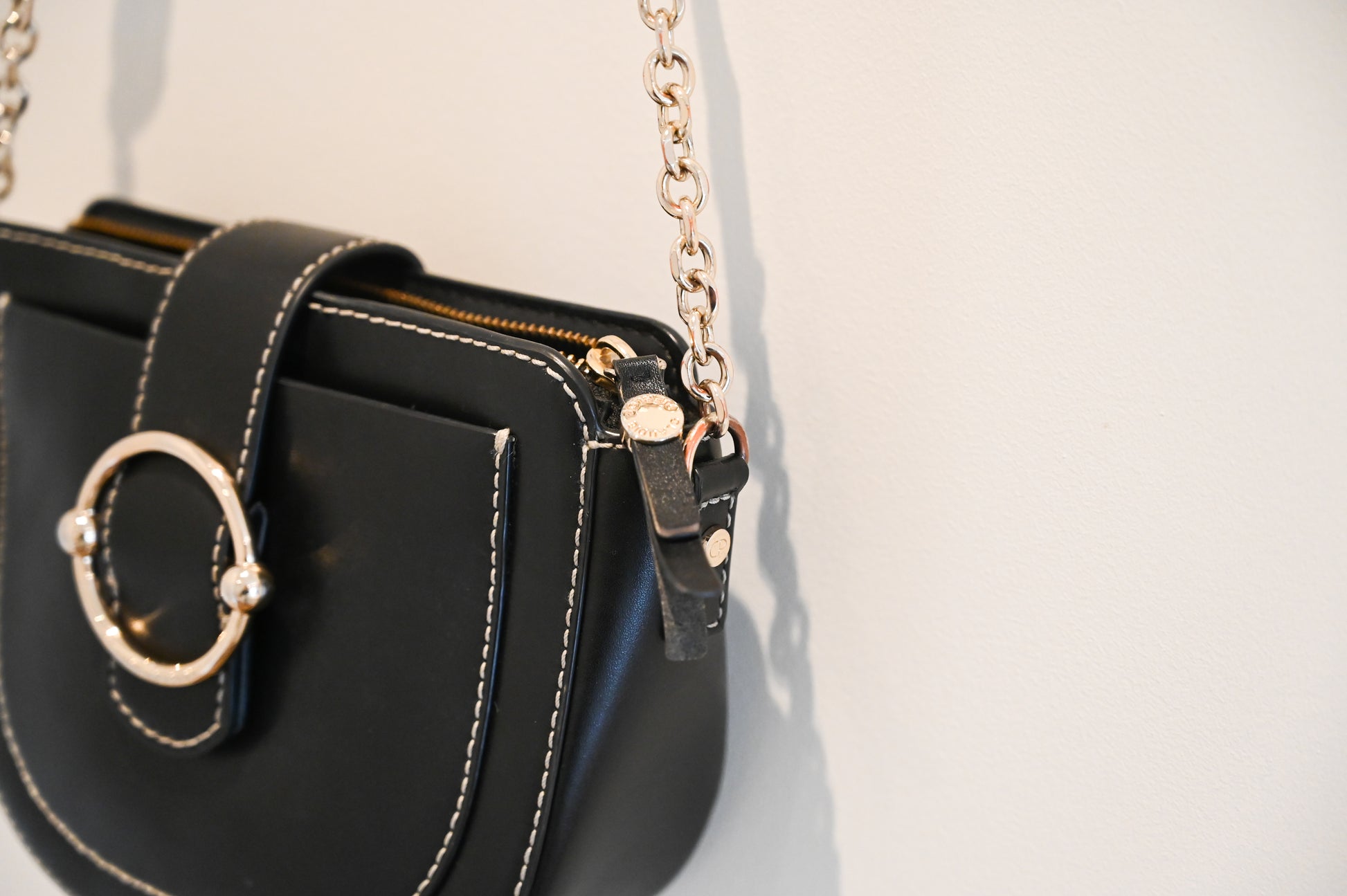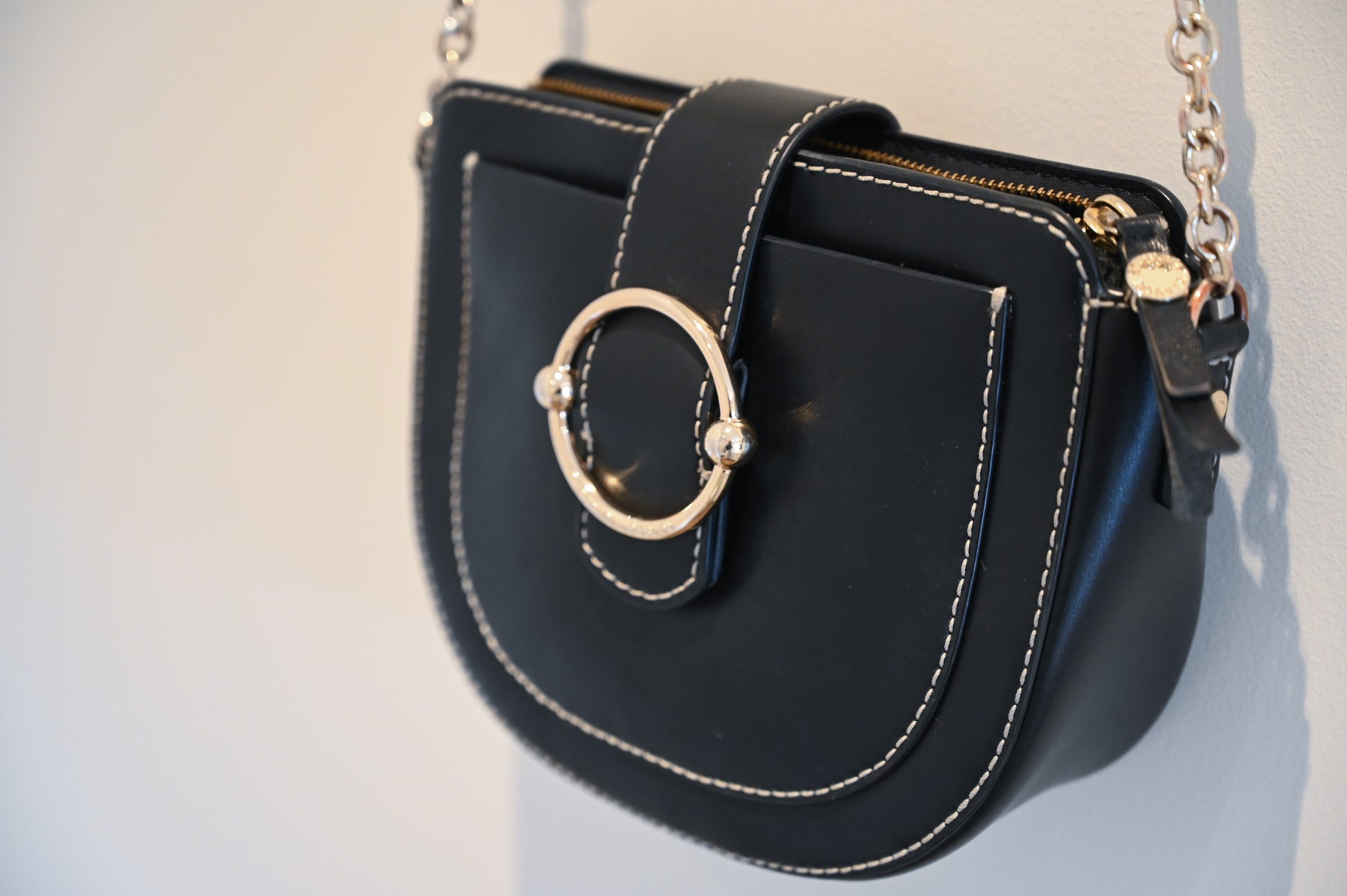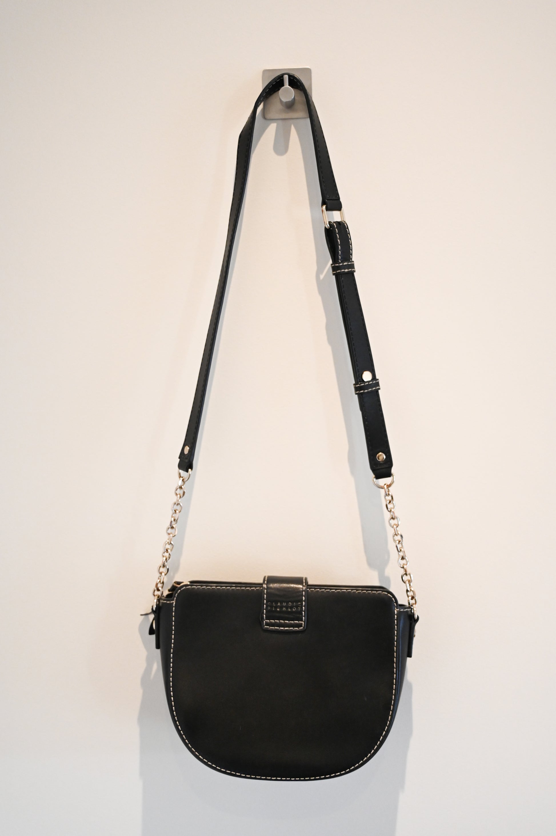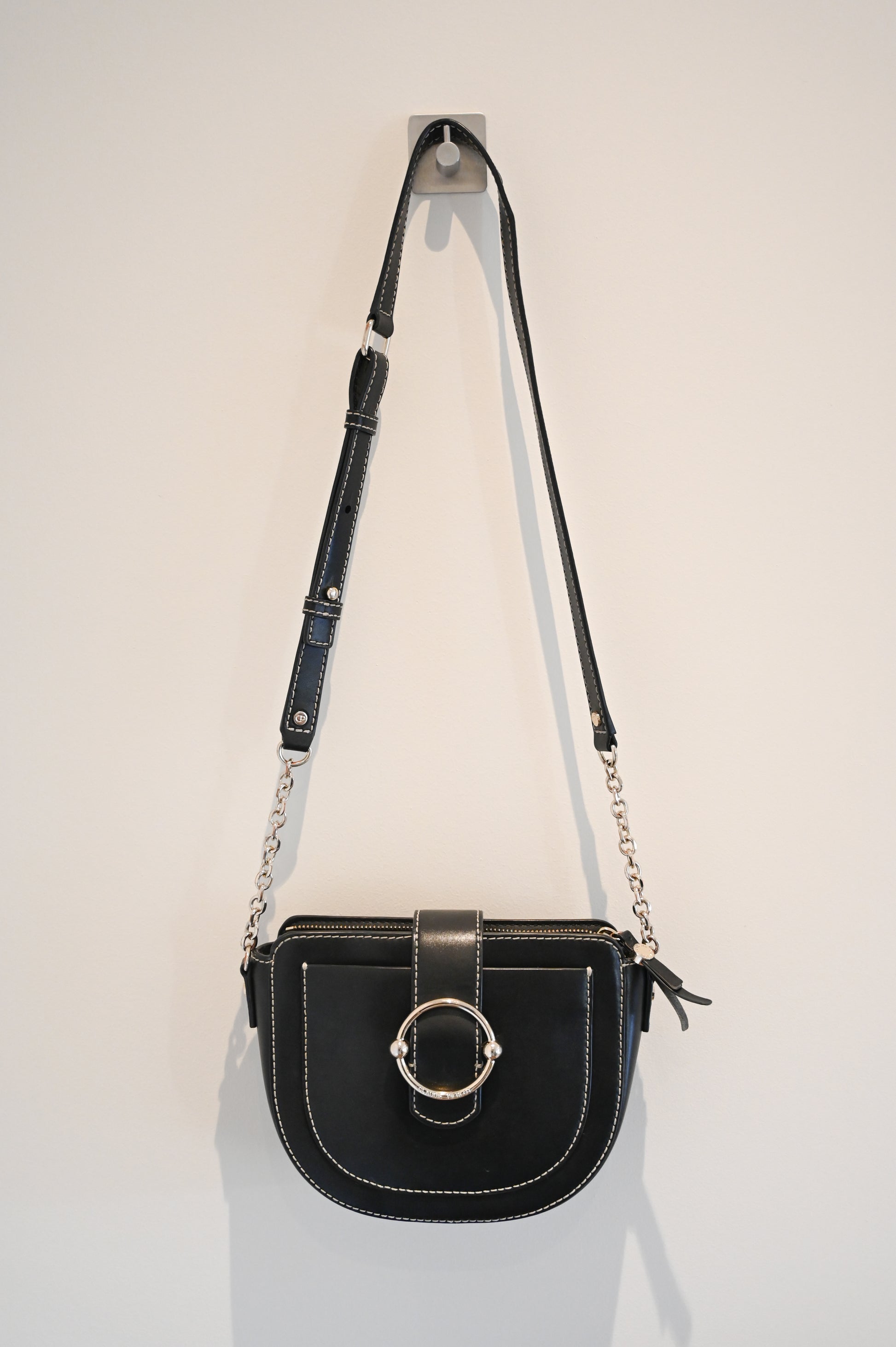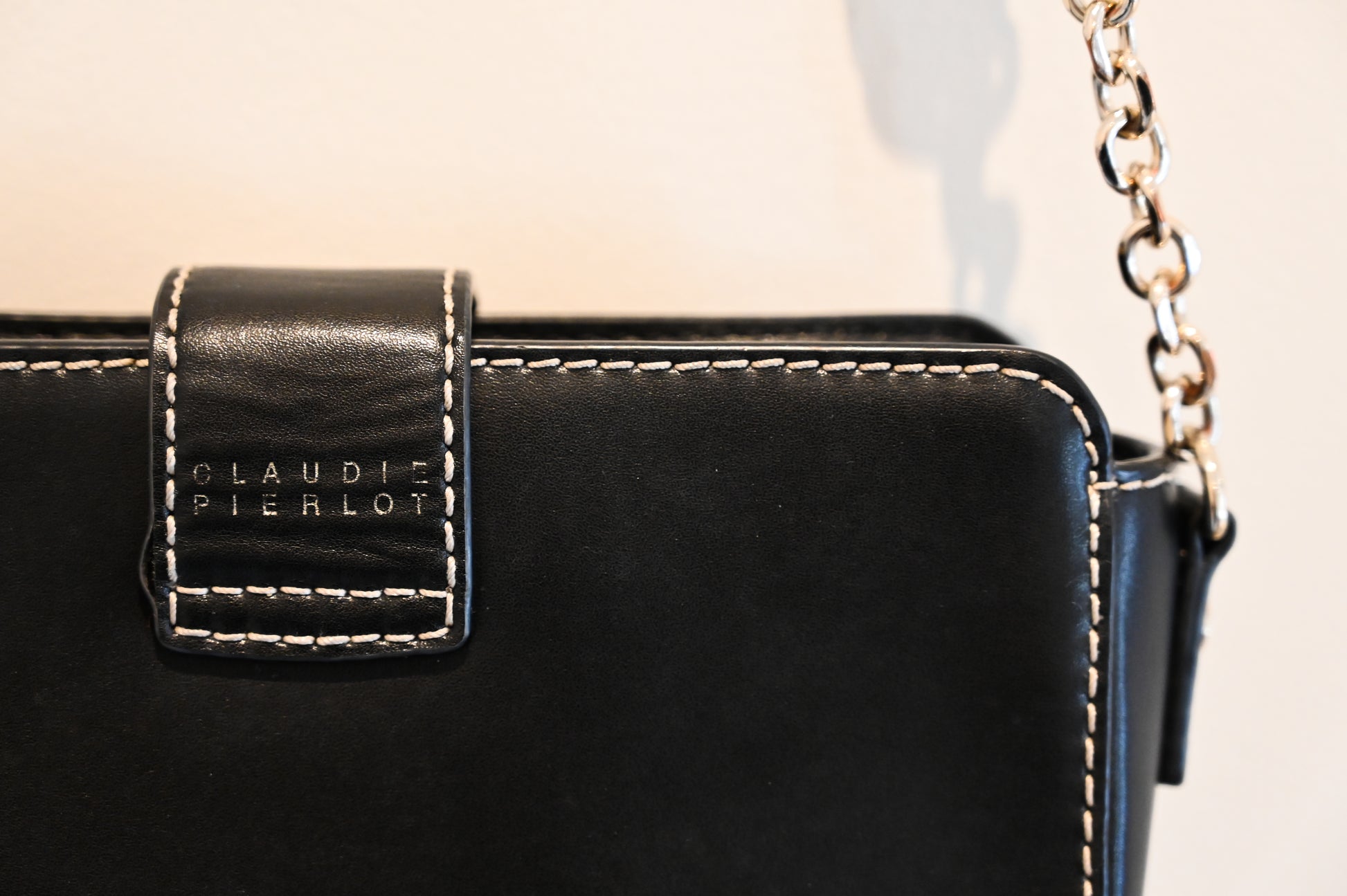 Claudie Pierlot black cross body horseshoe bag with silver coloured hardware.