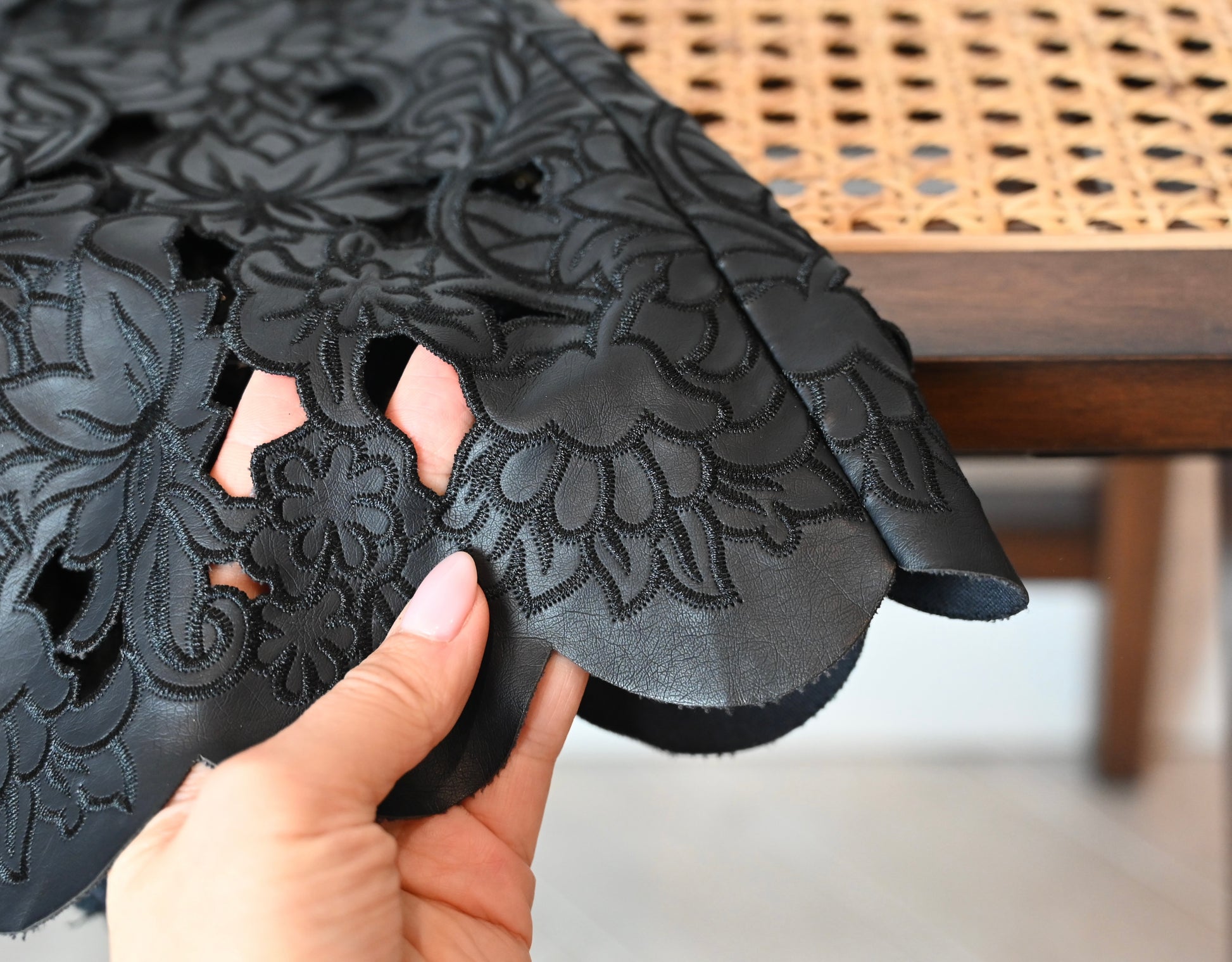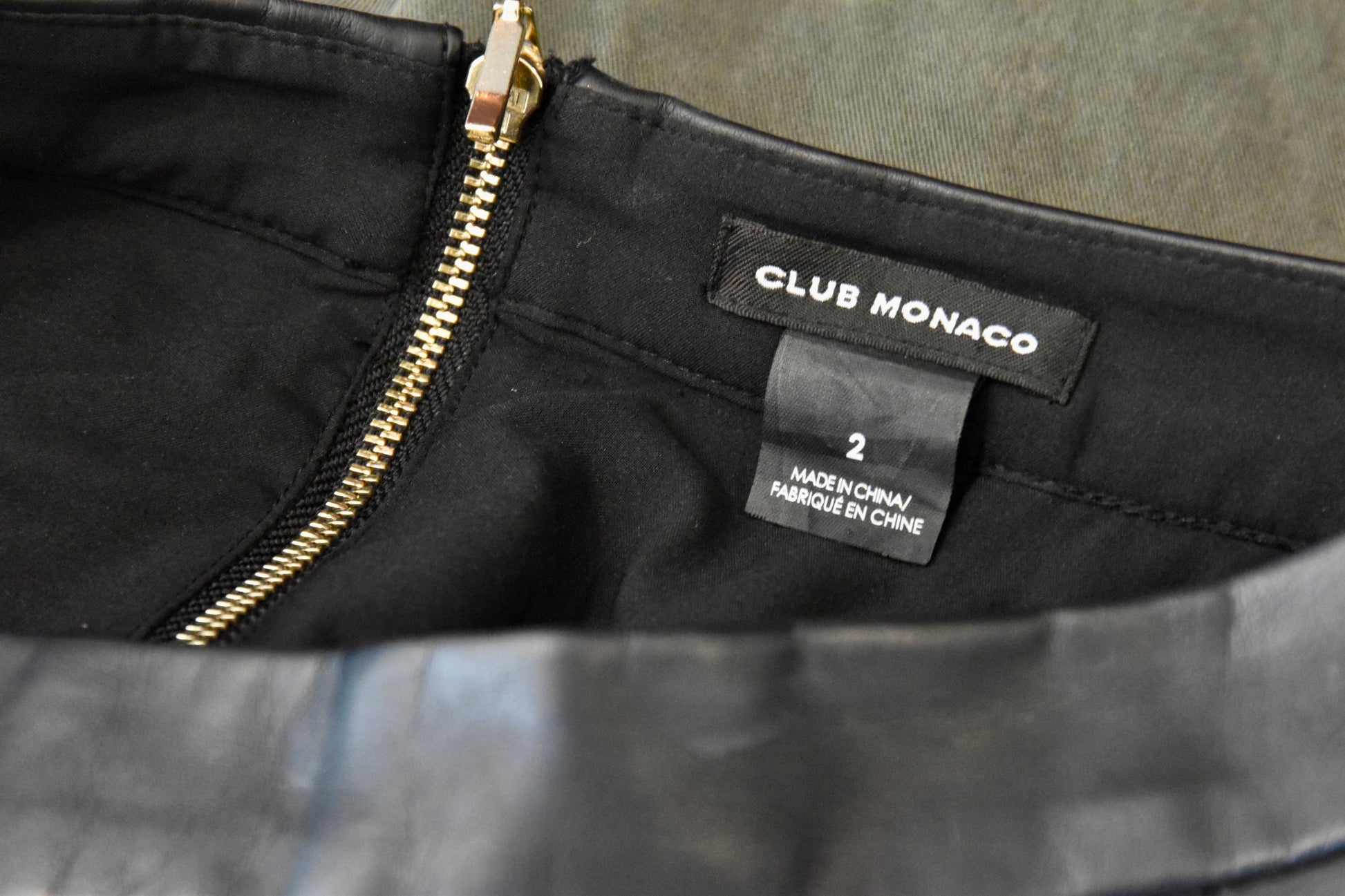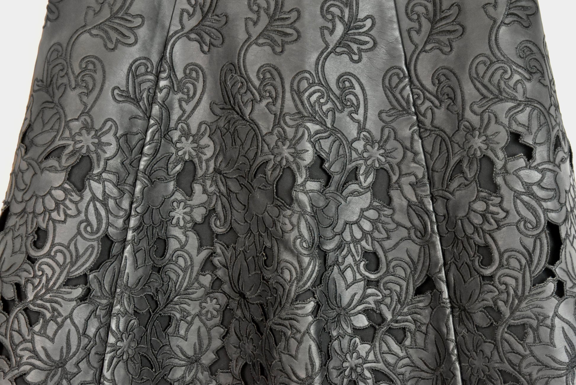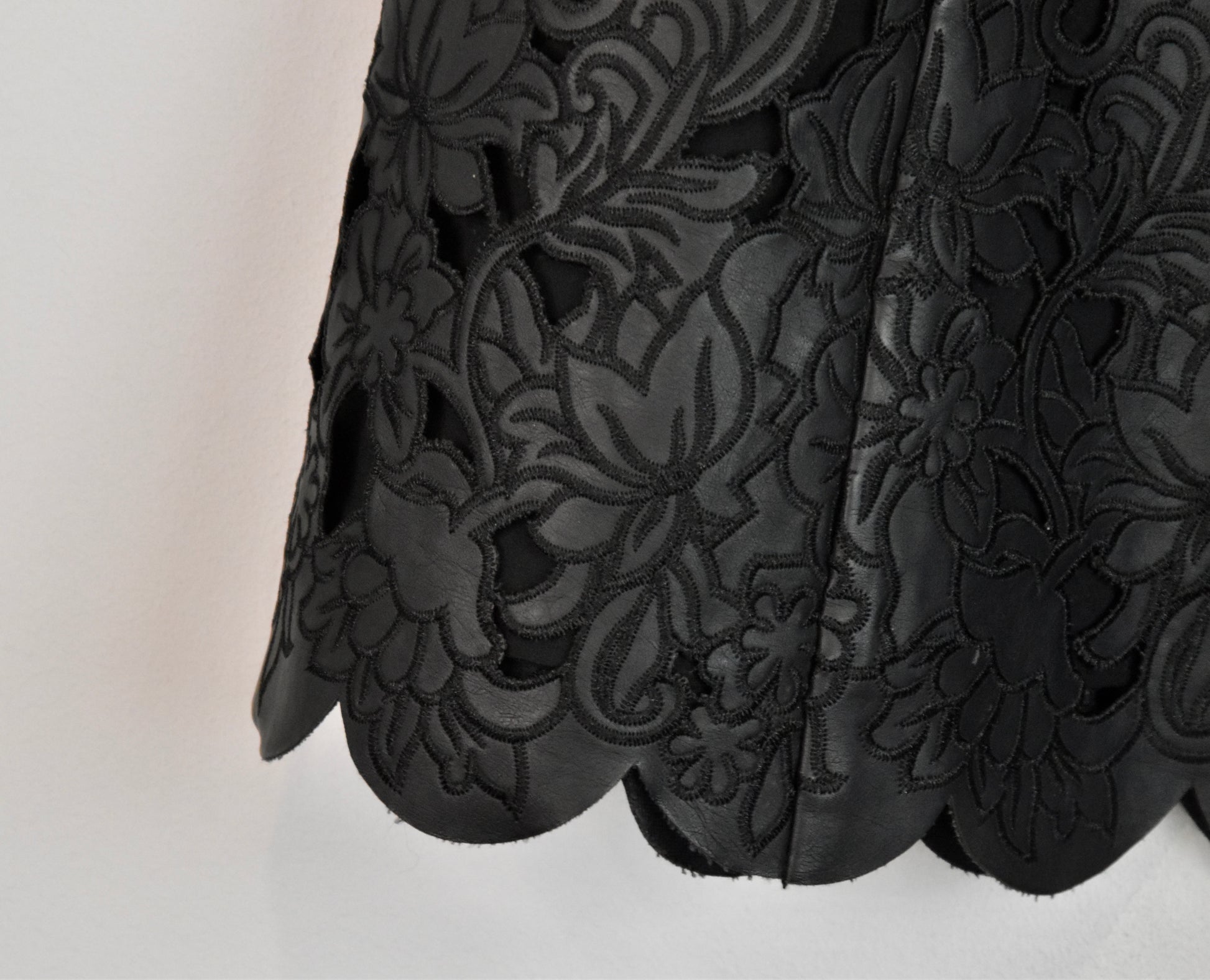 This amazing faux leather Club Monaco skirt is in fabulous pre-loved condition. A-line in style and with beautiful floral stencilling within the material makes this a real showstopper!
