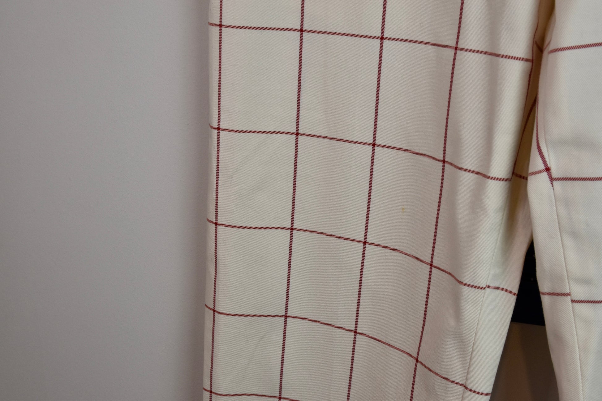 Cream Club Monaco ankle grazer trousers with delicate red check pattern.