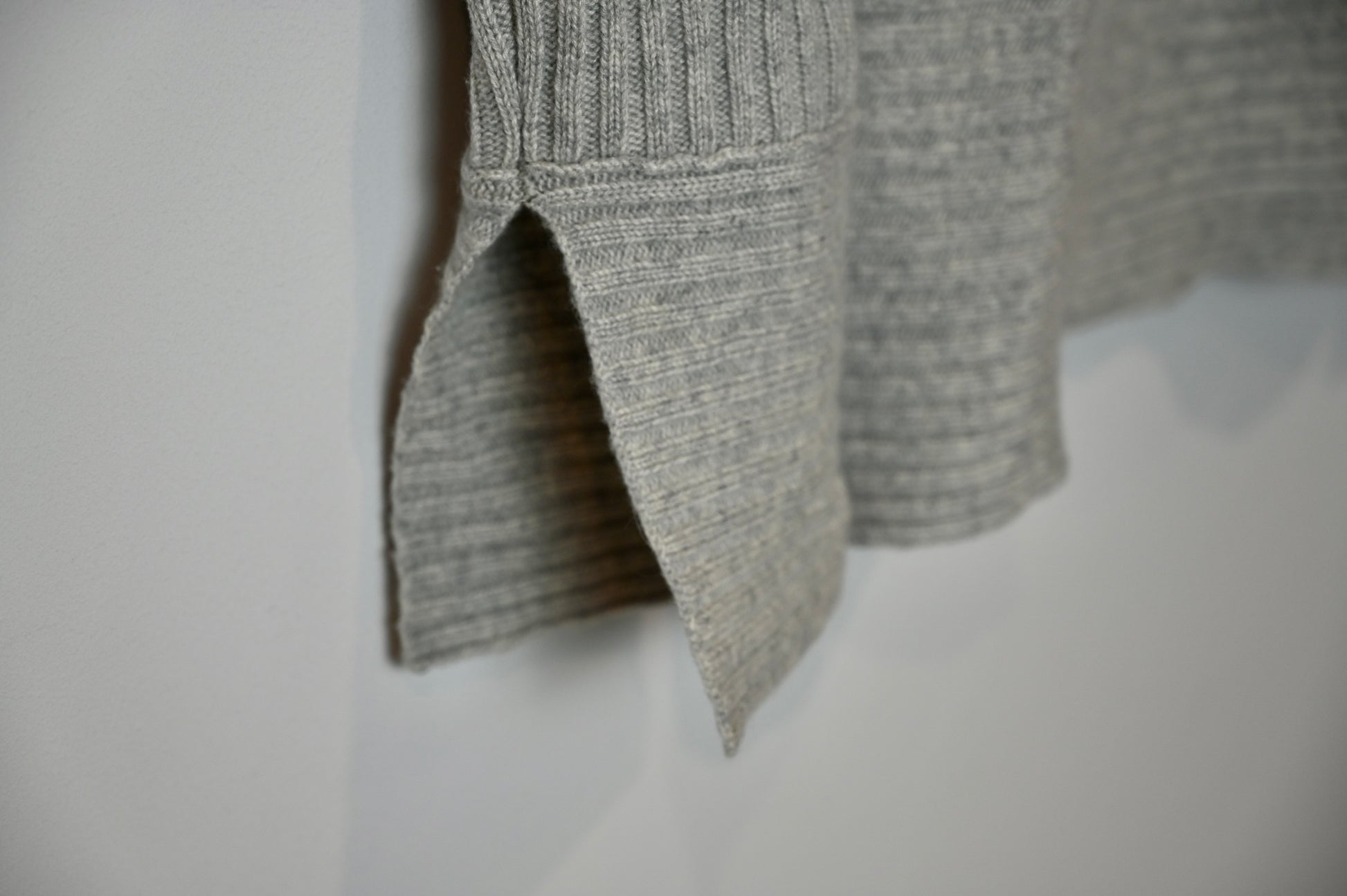 Medium weight pale grey jumper from Club Monaco's cashmere collection. Flattering ribbed detail and open sided cuffs.