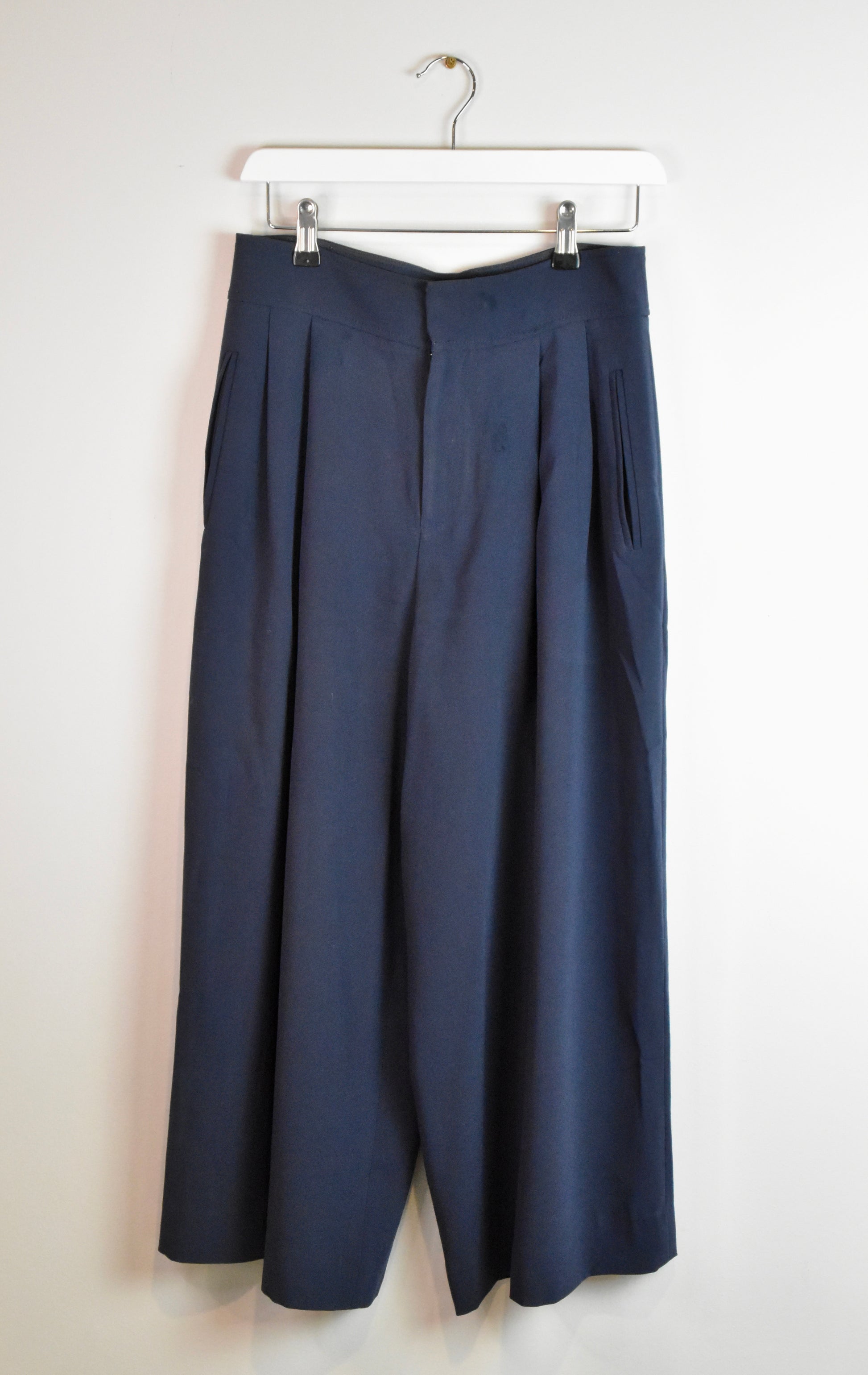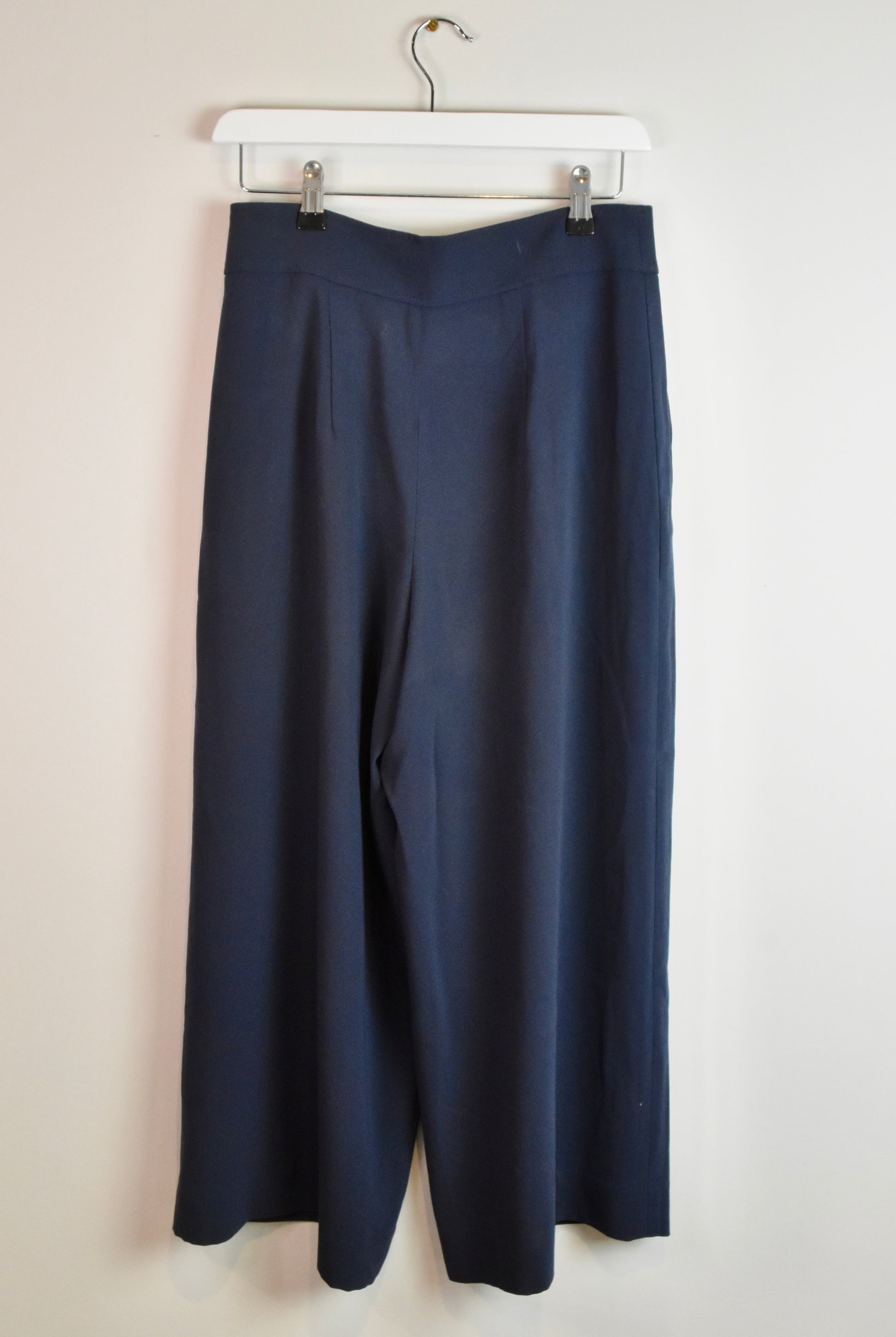 Club Monaco 'Vaclave' navy blue wide-legged cropped culotte trousers. This high rise design is so flowy it almost looks like a skirt when you walk and has pockets at the hips!