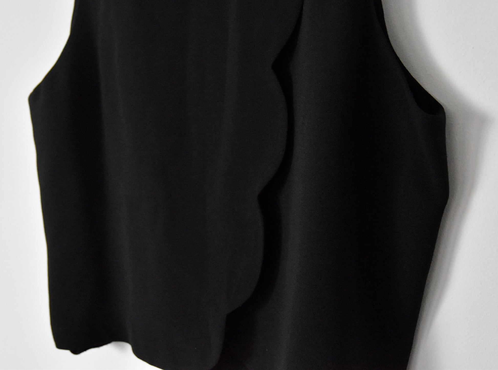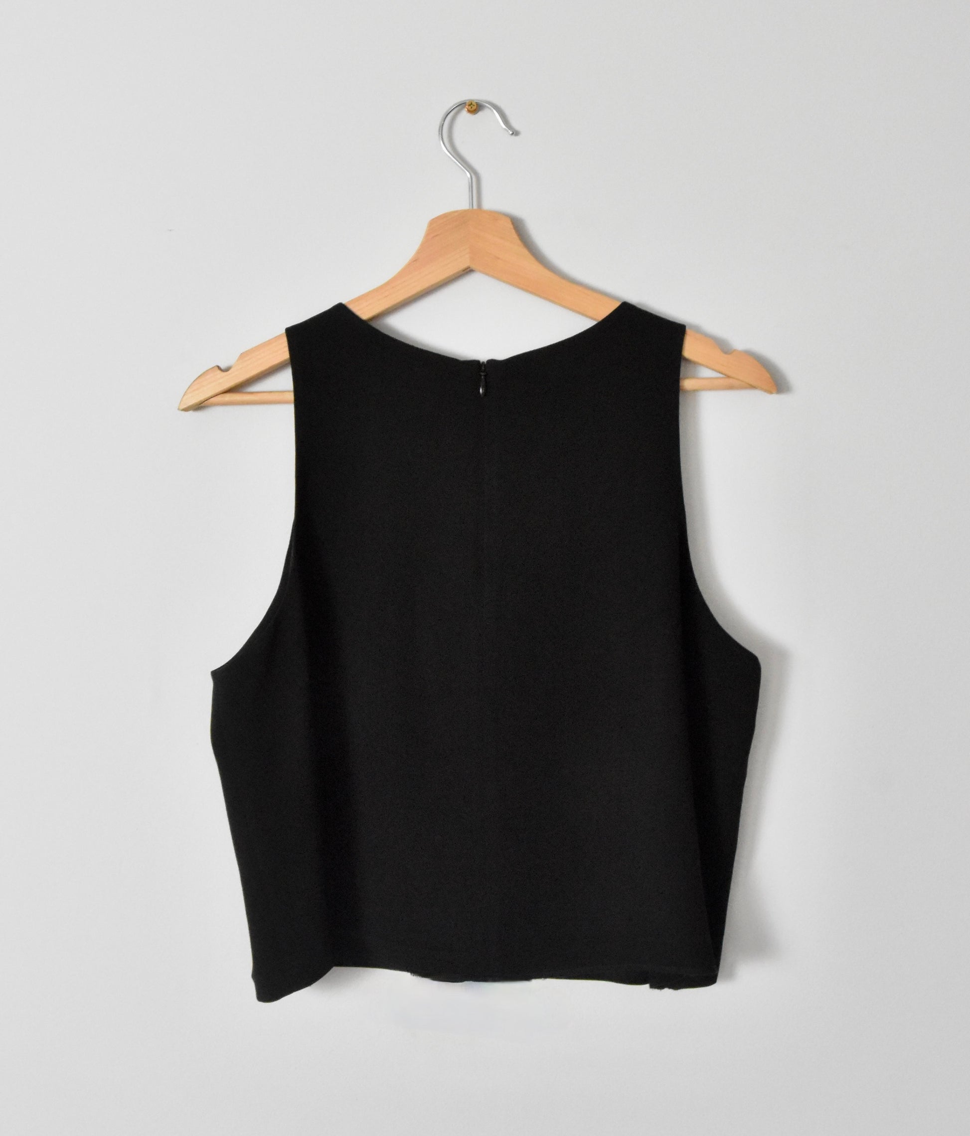 Super cute black cropped sleeveless top with pretty scalloped hem across the front. Fastened with a zip at the back.
