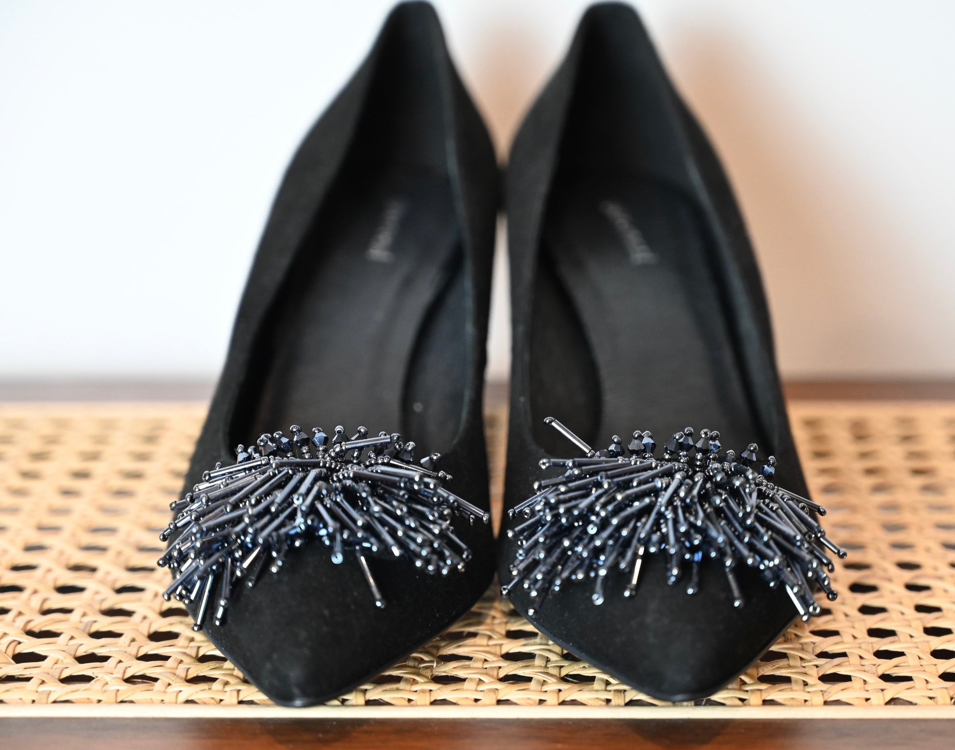 Amazing suede black Gino Rossi heels with quirky sequinned tassel detail on the toe.