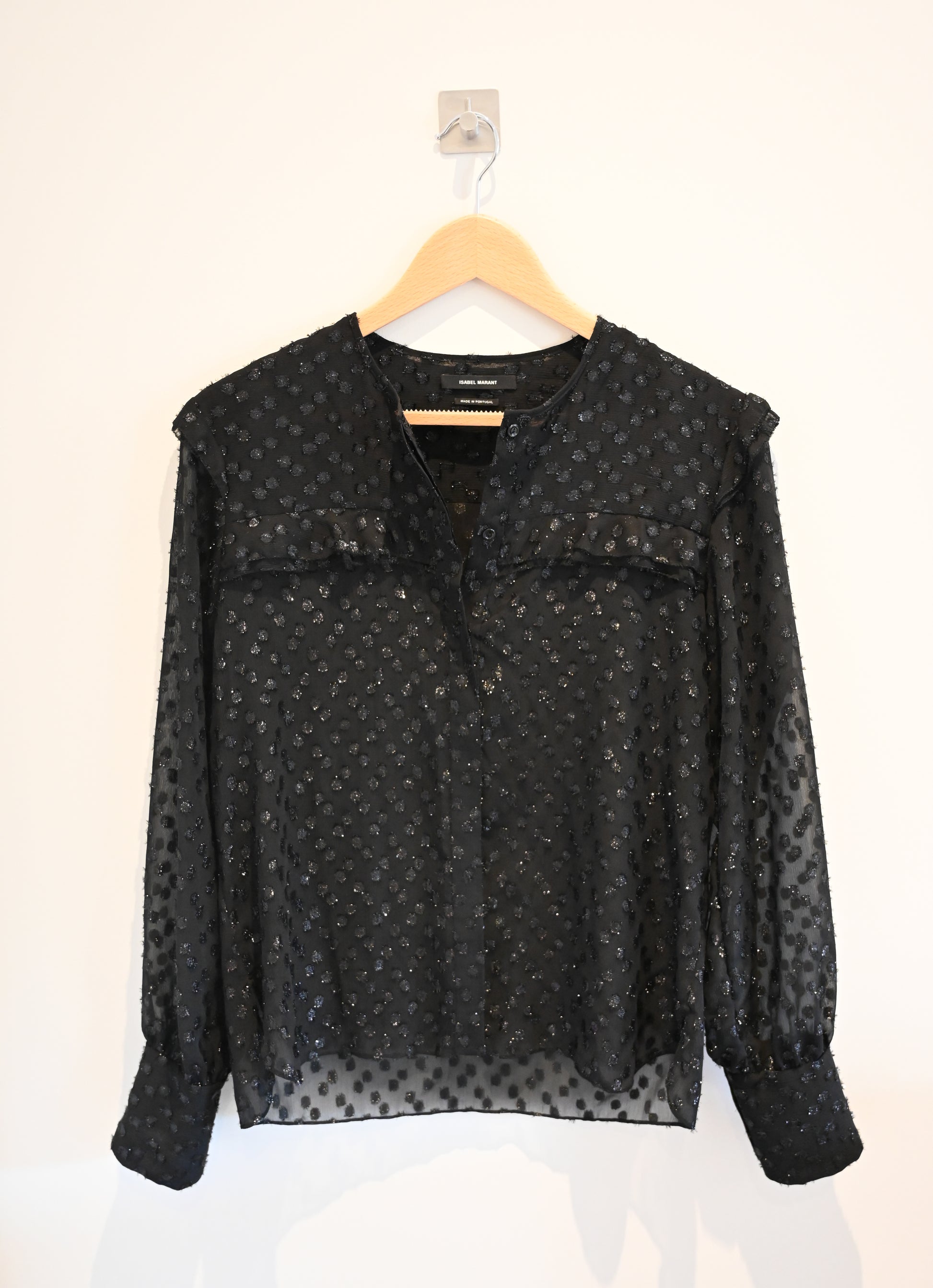 Gorgeous Isabel Marant sheer black polkadot blouse. Perfect for party season!