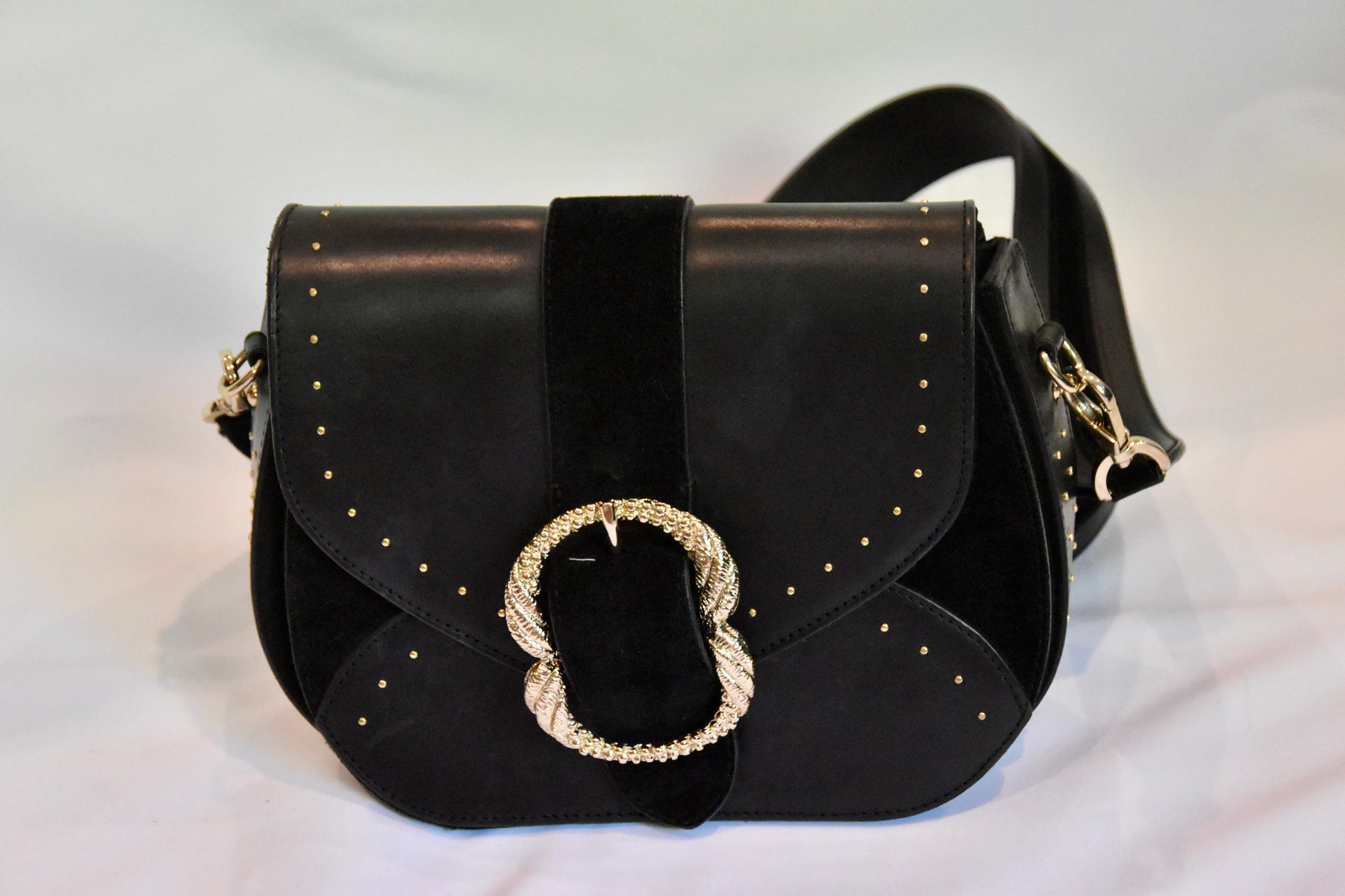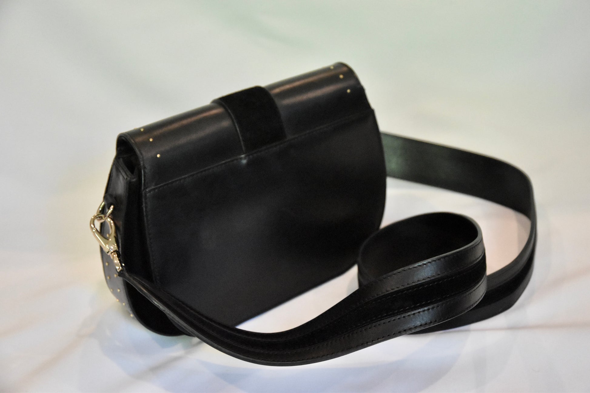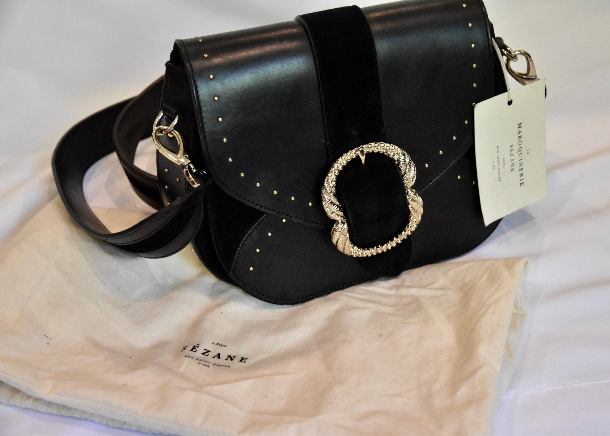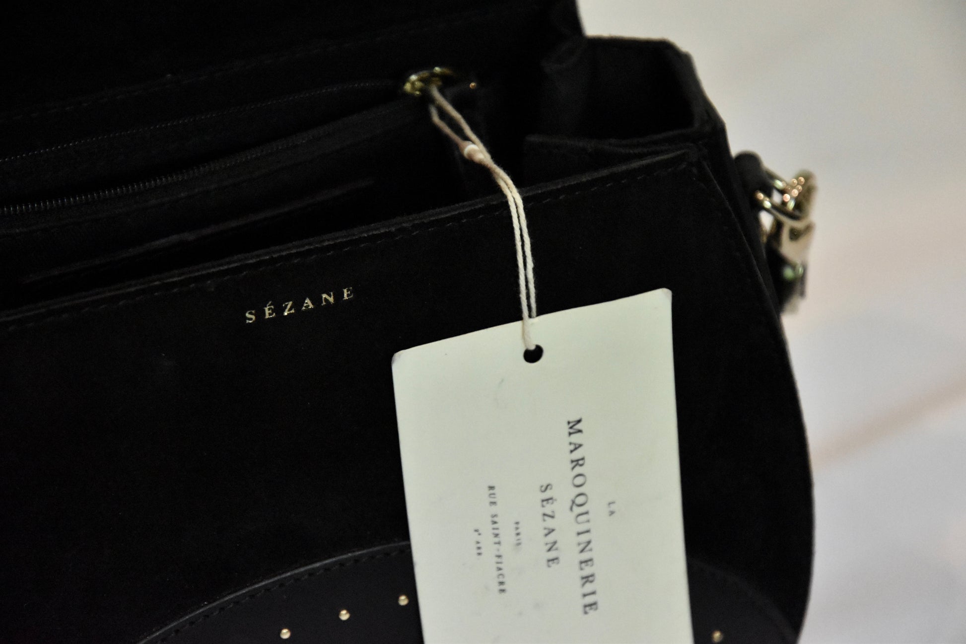 Beautiful Sézane 'Oli' bag with stud details in excellent preloved condition. The bag can be worn on the shoulder or cross-body - the outer and shoulder strap are made from leather.