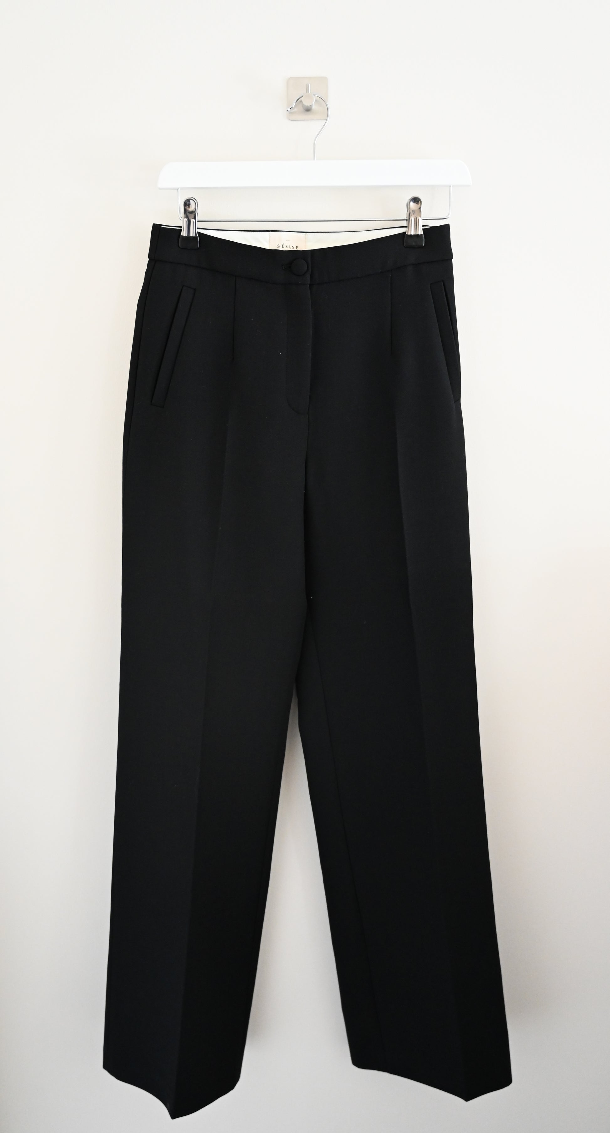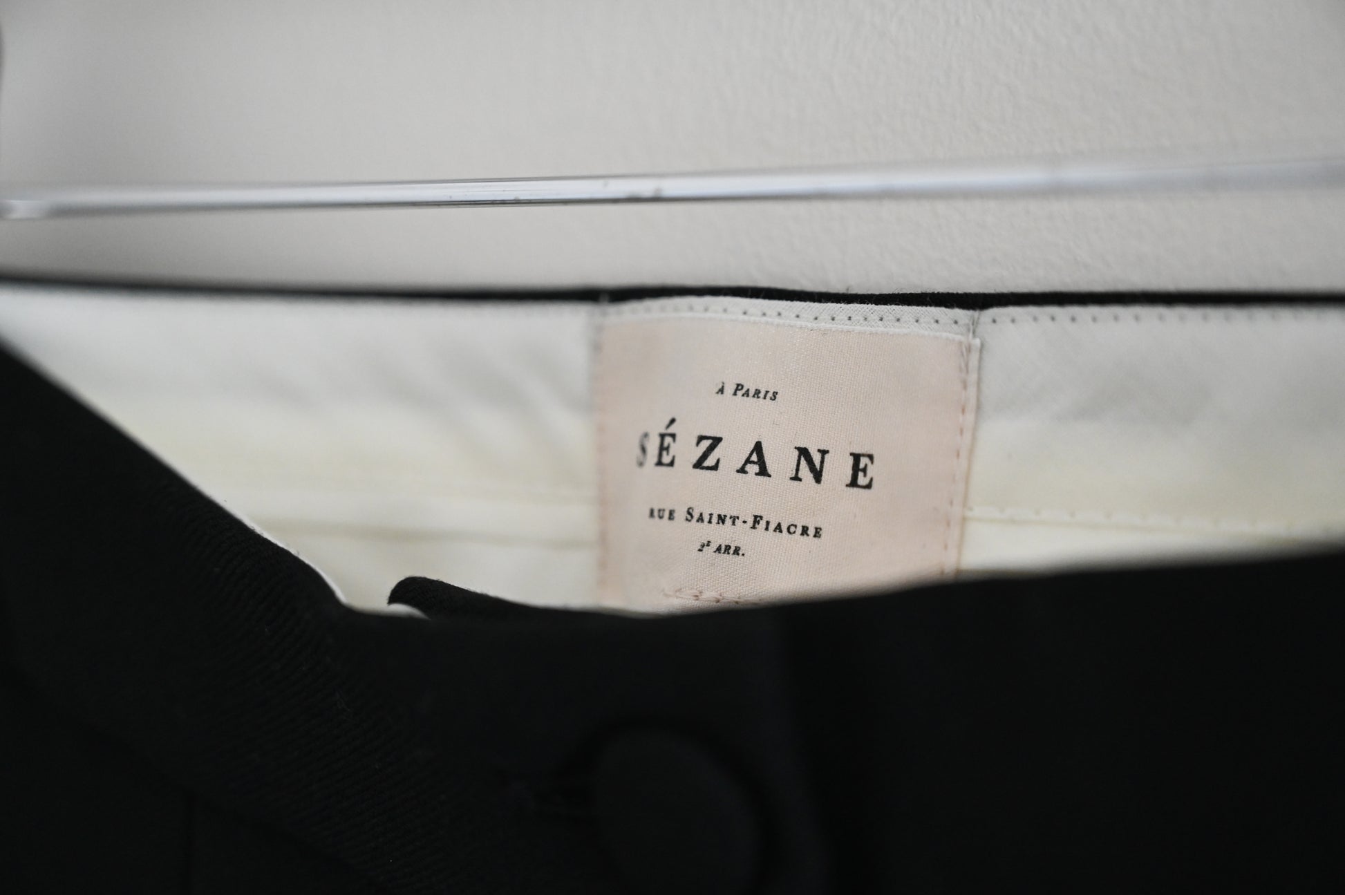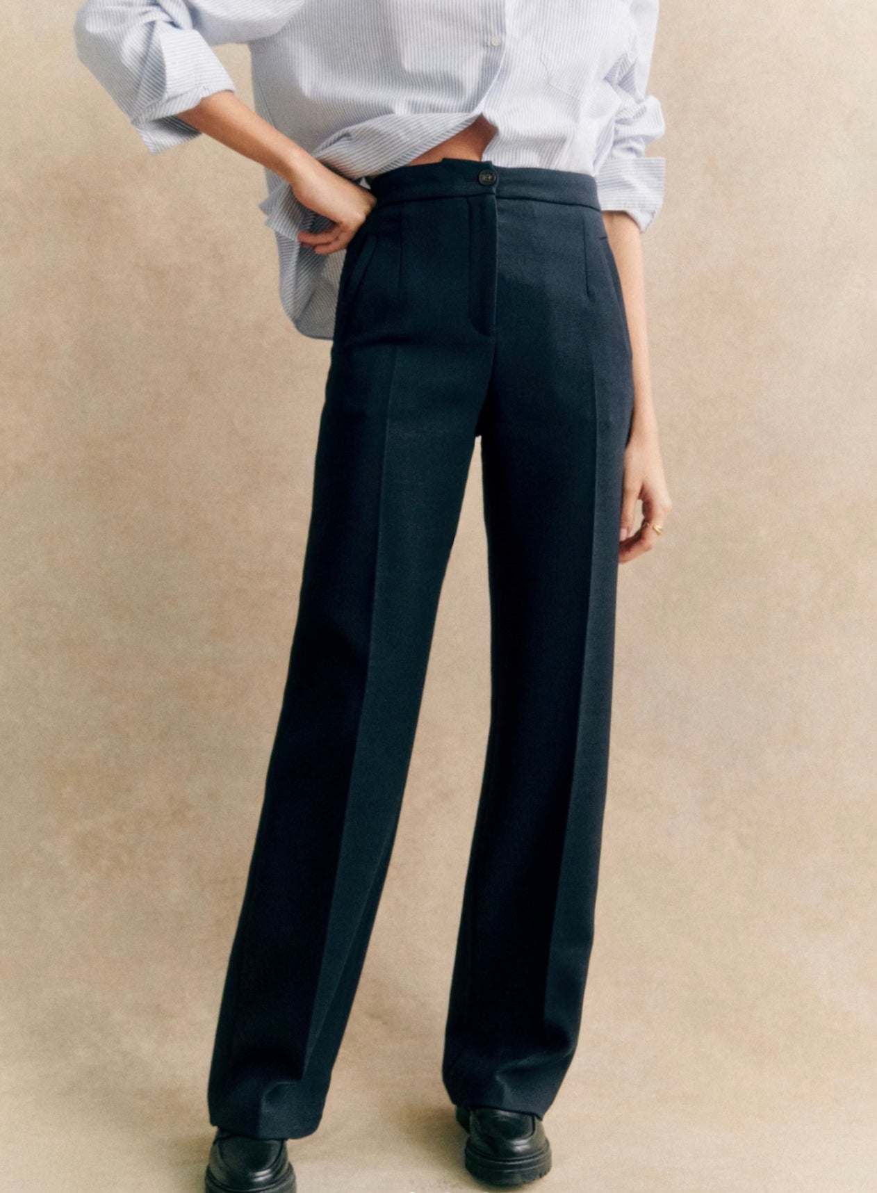High waisted Black Sézane 'Martin' trousers - straight leg, wide cut with hidden zip and button closure.